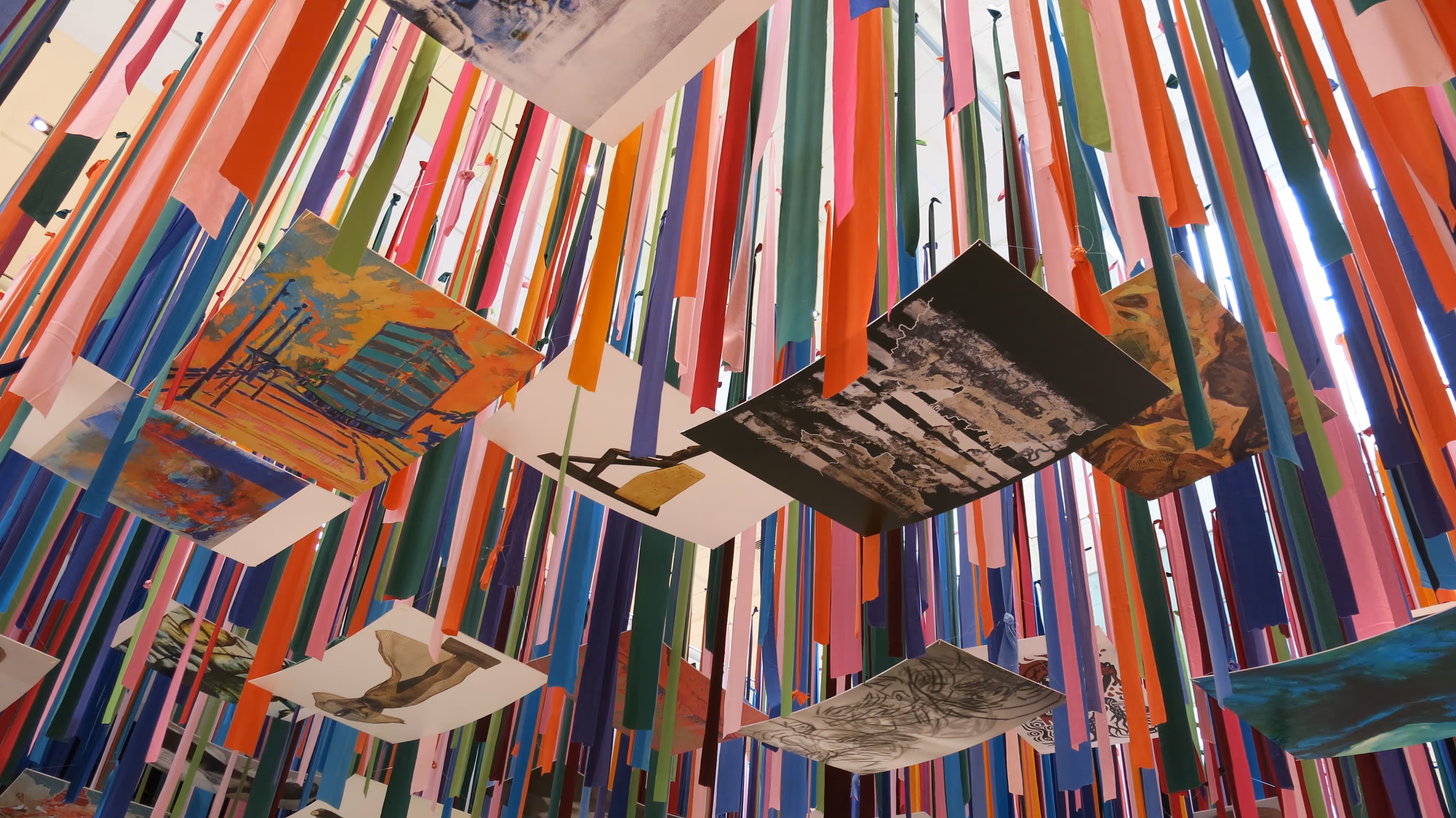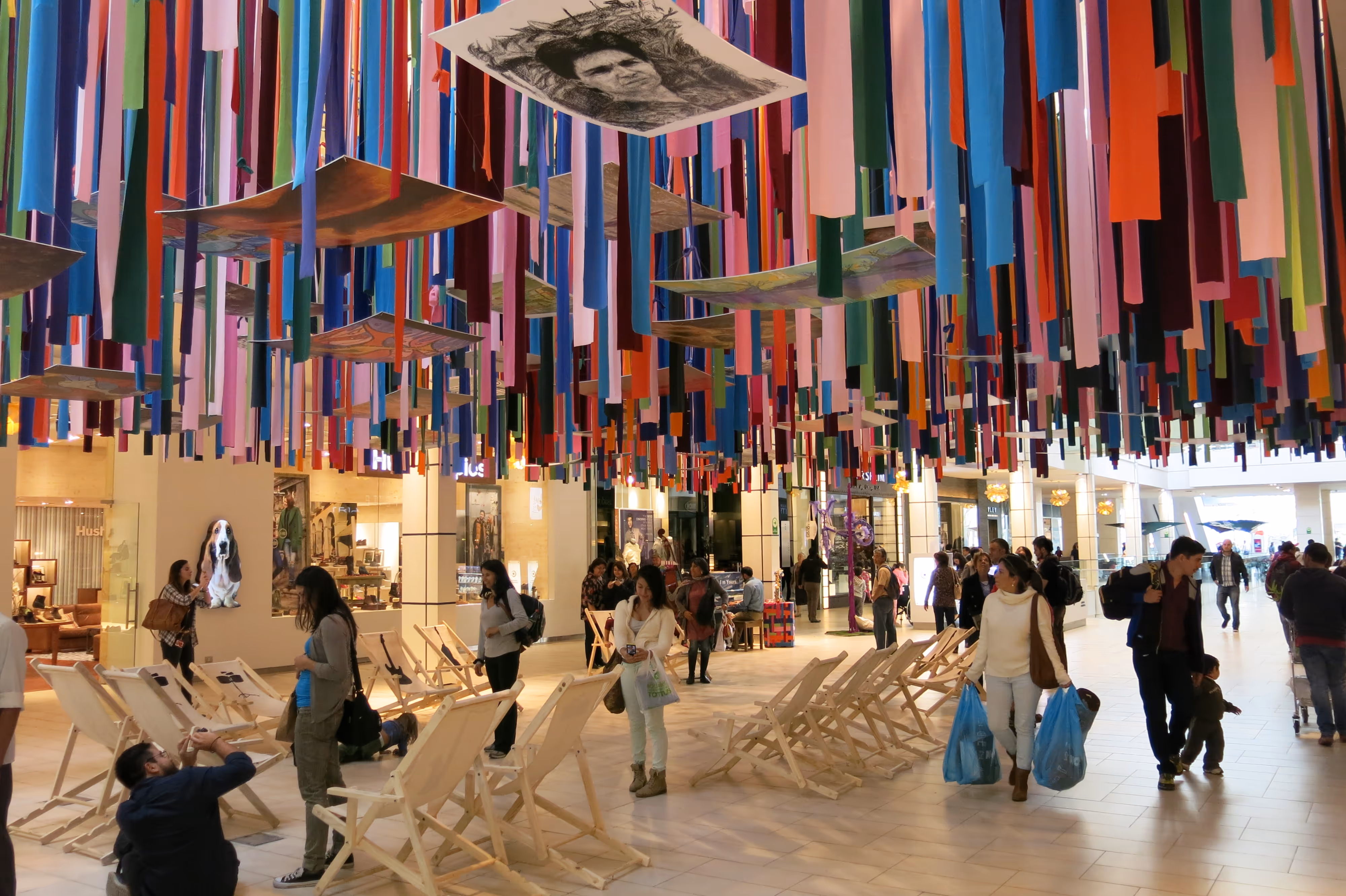 Diseño e instalación de intervención espacial suspendida en espacio retail. Composición de elementos livianos y color que transforma la percepción del recorrido, generando una atmósfera inmersiva y dinámica. Proyecto de rápida implementación con alto impacto visual y baja carga material.