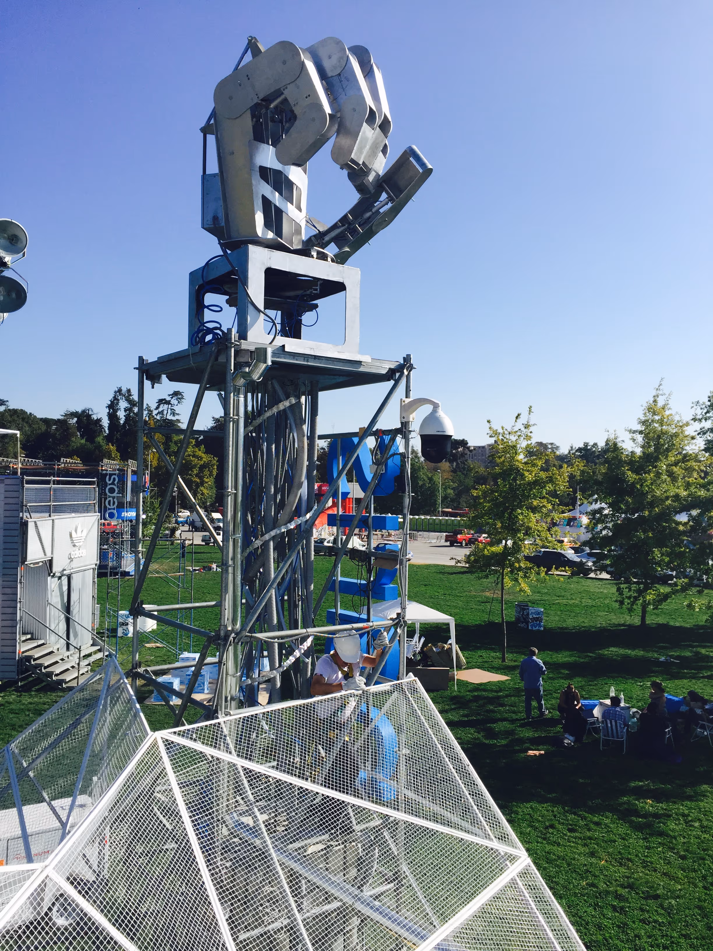 Instalación efímera que combina estructura, tecnología y branding en un dispositivo vertical de alto impacto. Integra soporte técnico y envolvente ligera, generando un hito reconocible que activa el espacio, amplifica la experiencia del evento y articula visibilidad a gran escala.